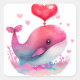 Pegatina Cuadrada Ballena Rosa Corazón Bonito Día de San Valentín