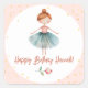 Pegatina Cuadrada Ballet Ballet Red Hair Pink Cumpleaños