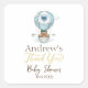 La tierna invitación a la ducha para bebés incluye un globo de aire caliente con un oso de peluche, un pájaro y nubes.
