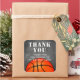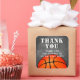 Baloncesto Bolas de Baloncesto Cumpleaños Gracias Pegatina Plaza. El diseño tiene un baloncesto con fondo de pizarra gris, nota de agradecimiento y nombre. Agregue el nombre de su hijo y su nota de agradecimiento.