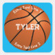 Pegatina Cuadrada Baloncesto, nombre blanco, 2 líneas de texto, azul