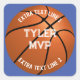 Pegatina Cuadrada Baloncesto, nombre del niño, MVP/Número, 2 líneas