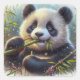 Pintura de lindos pandas jóvenes comiendo brotes de bambú verde