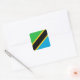 La bandera de Tanzanía fue aprobada el 30 de junio de 1964. Fue una fusión de las banderas de Tanganyika y Zanzíbar. La bandera está dividida diagonalmente por una banda negra de borde amarillo desde la esquina inferior del umbral. El triángulo superior (lado del orificio) es verde y el triángulo inferior es azul. El verde representa la vegetación natural presente en el país, el amarillo representa los ricos yacimientos minerales del país, el negro representa el color de la piel de los tanzanos, y el azul representa los numerosos lagos y ríos y el Océano Índico
