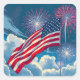 Pegatina Cuadrada Bandera Patriótica Americana con fuegos artificial