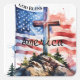Pegatina Cuadrada Bandera y cruza "Dios bendiga a Estados Unidos"