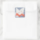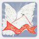 Atardado en, brillantes, rayas estelares, una paloma, con las alas levantadas, lleva, un cartel rojo brillante, en su pico, con la inscripción, las palabras, "Paz, Amor, Alegría"-resaltadas, en relucientes estrellas.