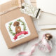 Pegatina Cuadrada Banner Red Berry Holly Navidades Red Dachshund