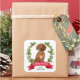En estos pegatinas por correspondencia de Holiday, un retrato acuarela de un lindo Dachshund rojo está rodeado por una corona de moras rojas. En la parte inferior hay un cartel rojo con el saludo de sus Navidades personalizados, y su firma está en verde debajo.
