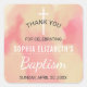 Este pegatina está diseñado para ser usado con un regalo de agradecimiento para los invitados del bautismo de su bebé. Un fondo de color rosa y dorado se acentúa con una cruz blanca y un texto personalizado para el nombre del bebé y la fecha del bautismo.