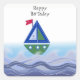 Un pequeño velero cabalgando en el océano ondulado azul. Personalizar como se desee.
