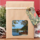 Pegatina de fotografía con barcos turísticos tradicionales y coloridos en el lago Bled bajo un castaño en colores otoñales en un paisaje otoñal en Eslovenia.