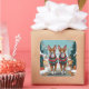This festive design captures the joyful spirit of the holiday season, featuring an adorable dogs.Nestled in a winter wonderland, complete with a decorated Christmas tree, and beautifully wrapped presents. Snowflakes gently fall, adding a magical touch to the scene, while the vibrant colors of the holiday decorations create a warm and cheerful atmosphere.