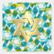 Pegatina Cuadrada Bat Mitzvah Aqua Turquoise Green Star Damask