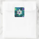 Pegatina Cuadrada Bat Mitzvah Peacock Silver Star Purple and Verde a