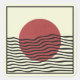 Arte mural minimalista de Bauhaus con un atrevido sol rojo y olas negras. Moderno, abstracto y perfecto para una decoración elegante en casa.