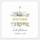 Esta imagen muestra un Pegatina cuadrado de bautismo bellamente diseñado. La parte superior del diseño presenta un sencillo y elegante símbolo cruzado, indicativo del significado cristiano del evento. Debajo de la cruz, una exuberante vegetación acuática, con diferentes tonos de hojas verdes que le dan un toque fresco y natural al diseño. El texto está cuidadosamente diseñado con una mezcla de fuentes clásicas y modernas, enfatizando una elegante ceremonia de bautismo. El nombre del niño figura de manera destacada, indicando el niño que debe ser bautizado.