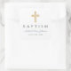 Pegatina de la Plaza del Bautismo de un niño con escritura azul y cruz religiosa personalizada.