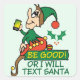 ¡Sé bueno o enviaré un mensaje a Santa! Navidades divertidos diciendo con un elfo con un traje verde y rojo. ¡Es un Elf moderno y te está observando para ver si eres malo o bueno este feriado!