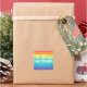 Hermosos Navidades del arcoiris fiestas pegatinas en bonitos llamativos colores que dicen Ser Feliz y Brillante. Alegre decoración de fiestas con temática de orgullo gay para una familia LGBTQ.
