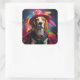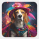 Pegatina Cuadrada Beagle en un Gorra de Feathered
