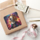 Pegatina Cuadrada Beagle en un Gorra rosado
