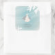 Un bebé de tiburón dulce acunado en una manta y balanceándose suavemente en las olas turquesa. Fantástico para la ducha de bebé gracias a los amigos.