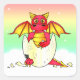 Pegatina Cuadrada Bebé Dragón Cuto en Huevo Crackeado - Rojo / Amari
