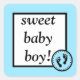 Pegatina Cuadrada Bebé dulce y huellas-azul