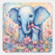 Pegatina Cuadrada Bebé elefante en un jardín pastel gracias