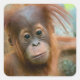Pegatina Cuadrada Bebé lindo Orangutan mirando directo hacia adelant