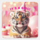 Pegatina Cuadrada Bebé Tigre mate bebé revelar Chica rosado