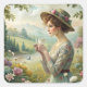 Pegatina Cuadrada Beber té en el jardín