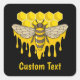 Abeja de miel con alas abiertas icono sobre colmena de abejas y gotas de miel. Color de fondo personalizado. Texto personalizado.