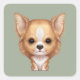 Pegatina Cuadrada Beige y Chihuahua Blanco de larga data