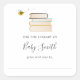Pegatina Cuadrada Biblioteca de Baby Shower de Bee