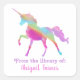 Este pegatina de unicornio color arcoiris se puede personalizar para cualquier redacción. ¡Esta placa hace el regalo perfecto para los niños, profesores y amantes de los libros por igual!