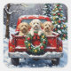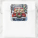 Pegatina Cuadrada Bichon Frise Christmas Red Truck Holiday