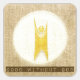 Feliz símbolo humano sobre fondo de burlap con texto.