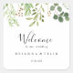 Pegatina Cuadrada Bienvenida a Eucalyptus Boda Floral Marrón Simple