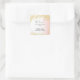 Pegatina Cuadrada Bienvenida al Boda Golden Splash, Purpurina rosa c
