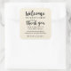 Pegatina Cuadrada Bienvenida boda Gracias Hotel Personalizado Favor