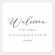 Este elegante pegatina cuadrado de bienvenida, boda de caligrafía, es perfecto para un boda rústico. El diseño, sencillo y elegante, presenta una tipografía de escritura clásica y elegante en blanco y negro. Estas etiquetas son perfectas para los bolsos de bienvenida de los huéspedes del hotel y las bodas de destino.