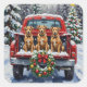 Pegatina Cuadrada Biewer Terrier Christmas Red Truck Holiday