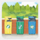 Una hilera de coloridas papeleras de reciclaje. Este diseño parece realmente efectivo para estos Pegatinas