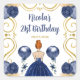 This birthday sticker features an elegant gold frame, a beautiful princess with red hair and a navy blue dress, flowers and a balloon. This is perfect for a birthday party.