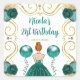 Pegatina Cuadrada Birthday Party Red Hair Princess in Teal
