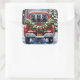 Pegatina Cuadrada Black Cat Christmas Red Truck Holiday