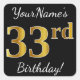 Pegatina Cuadrada Black, Faux Gold 33rd Birthday + Custom Name