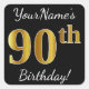 Pegatina Cuadrada Black, Faux Gold 90th Birthday + Custom Name